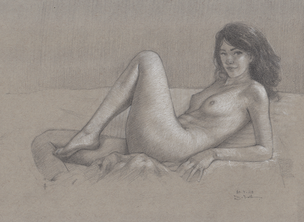 I break down my steps in drawing a nude figure model in 9 slides of high-resolution images format of step by step breakdown to my process in drawing the figure in pencil and white pastel.